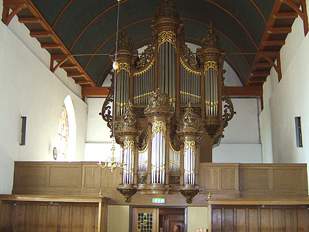 Het orgel is oorspronkelijk gebouwd in 1872 door de orgelbouwer Adema uit Leeuwarden, met twee klavieren en een vrij pedaal. In 1939 is het ingrijpend gerestaureerd door de firma Spanjaard uit Amsterdam. Hierbij werden de kas en het front vervangen door een kas van het orgel uit de Dominicanerkerk te Leeuwarden, eveneens van Adema. De dispositie van het orgel werd hierbij gewijzigd en uitgebreid. De mechanische tractuur werd vervangen door een electro-pneumatische tractuur. In 1950 is het uitgebreid met een derde klavier door de fima Reil. In 1983 is een grootscheepse restauratie uitgevoerd, omdat het orgel in een slechte staat verkeerde. Deze restauratie is uitgevoerd door de fima Verschueren uit Heythuysen. De mechanische tractuur werd hierbij hersteld en een aantal registers gereserveerd. de laatste hiervan zijn in 2001 geplaatst. Het orgel heeft nu 34 registers, verdeeld over Hoofdwerk, Rugwerk, Onderpositief en Pedaal. Het is geplaatst achterin de kerk boven de ingang.