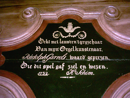 Dit beroemde orgel is gebouwd in 1732 door R. Garrels. Het heeft in de loop der eeuwen vele wijzigingen ondergaan. J. Bätz vernieuwde in 1841 bij een restauratie de klaviatuur. Een nieuw pedaalklavier werd in 1882 door Maarschalkerweerd geplaatst. Het Bovenwerk werd toen in een Zwelkast geplaatst. Een grote restauratie vond plaats in 1938 door G. van Leeuwen. Hierbij werd de manuaal- en pedaalomvang uitgebreid evenals de dispositie. Pels & van Leeuwen voerde in 1978 een omvangrijke restauratie uit, waarbij de windvoorziening en de registermechaniek werden vernieuwd. Het orgel telt nu 47 registers, verdeeld over Hoofdwerk, Rugwerk, Bovenwerk en Pedaal. |