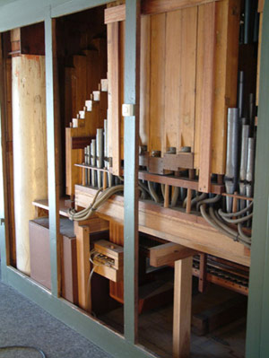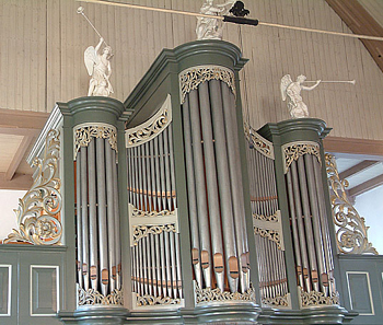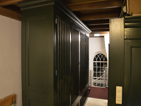 nieuw gebouwde orgelkas die los achter het orgel is geplaatst. Het orgel heeft