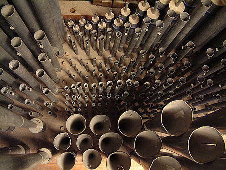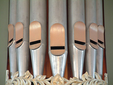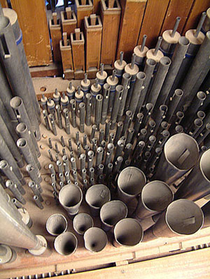 het nieuwe orgel werd gebruik gemaakt van veel pijpwerk uit het oude orgel. De