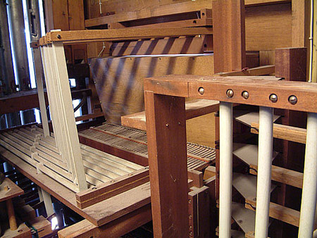 iets verdiept. De zelfstandige pedaalregisters hebben een plaats gekregen in een
